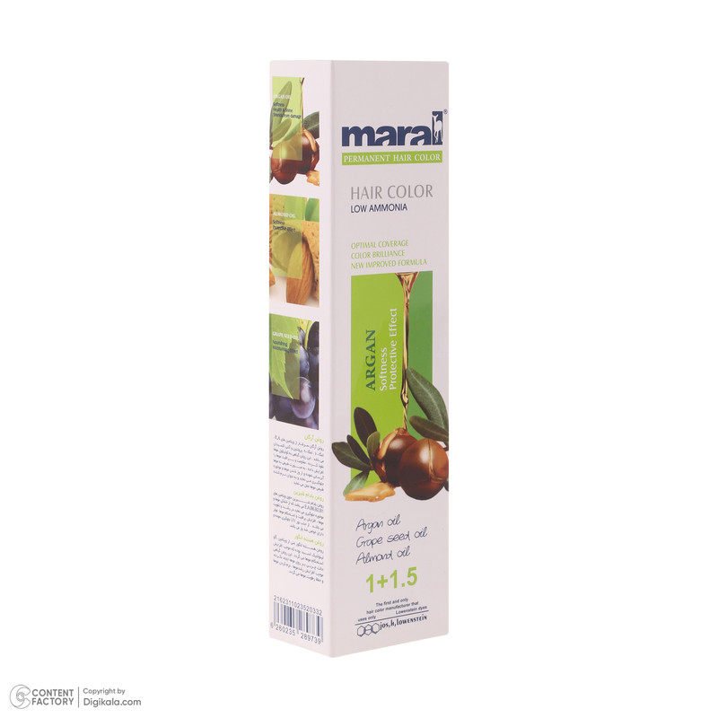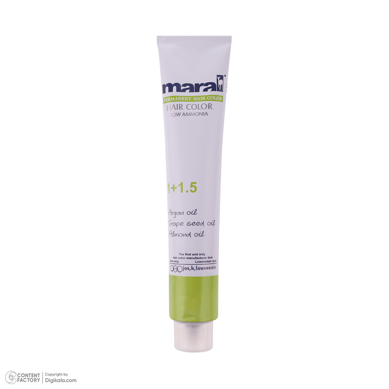رنگ مو مارال رنگ مو دائمی است که قادر است رنگ موجود موها رو تغییر داده، تیره تر یا روشن تر کند. قدرت پوشش رنگ مو مارال برای موهای خاکستری عالی بوده و در هر شرایطی کاملا پایدار است. رنگ مو مارال حاوی روغن آرگان، روغن هسته ی انگور، روغن بادام، ویتامین، نرم کننده و حالت دهنده ی مو می باشد که باعث درخشندگی مو شده و از خشک شدن و شکنندگی مو جلوگیری می کند. حجم: ۱۰۰ میل نسبت درصد ترکیب ۱ به ۱/۵ برای رنگ مو های معمولی اکسیدان ۶ درصد و رنگ موهای روشن کننده ۱ به ۲ اکسیدان ۹ درصد مارال می باشد.