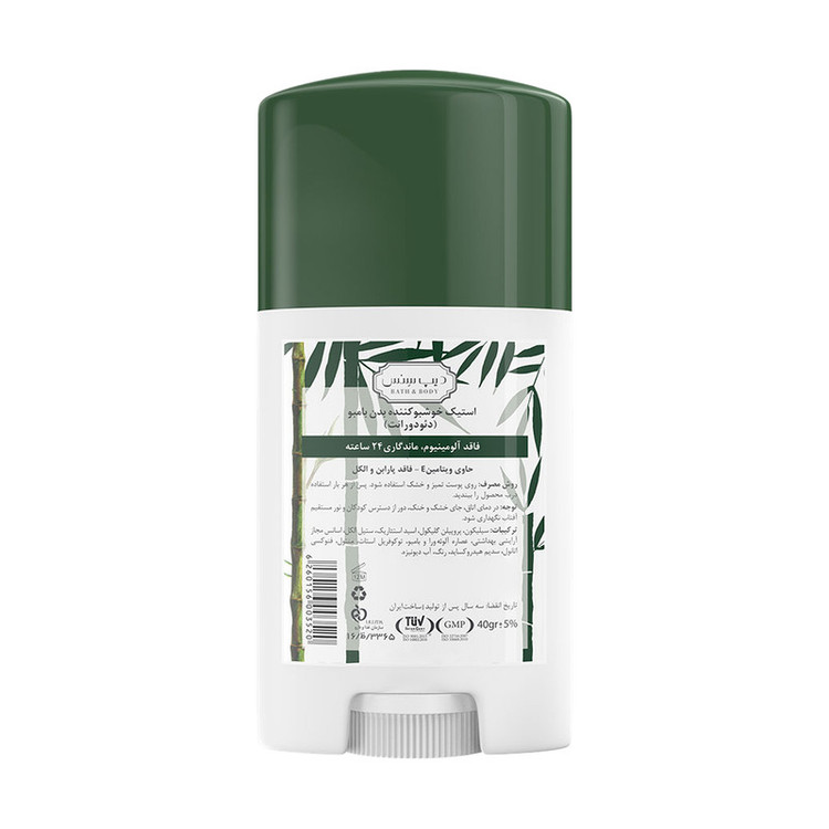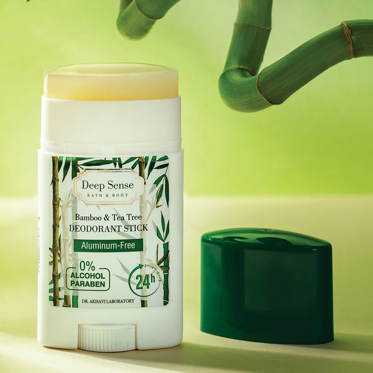 دئودورانت بامبو و درخت چای دیپ سنس مناسب انواع پوست، فاقد ترکیبات آلومینیومی، پارابن و الکل است و روی لباس لک یا سفیدی به جا نمیگذارد. این استیک با رایحه ملایم تا 24 ساعت از تعریق جلوگیری کرده و با ترکیبات گیاهی موثر، ضمن تأمین و حفظ رطوبت پوست به روشن شدن آن نیز کمک میکند.