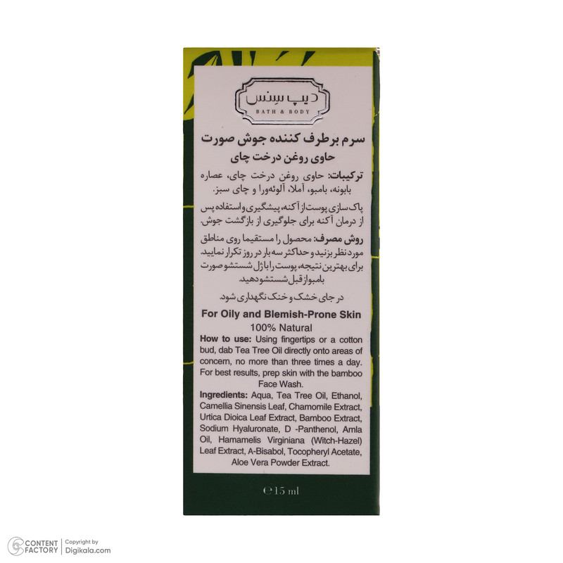 سرم ضد جوش دیپ سنس مدل TEA TREE مناسب برای پوست های مختلط و چرب حجم 15 میلی لیتر