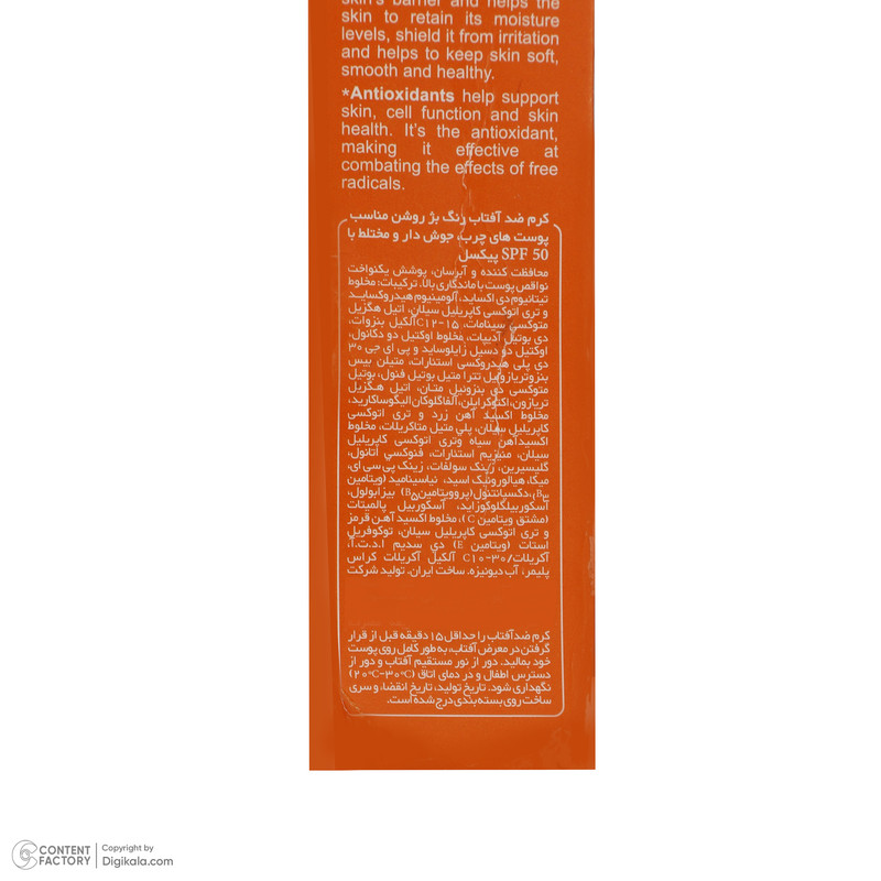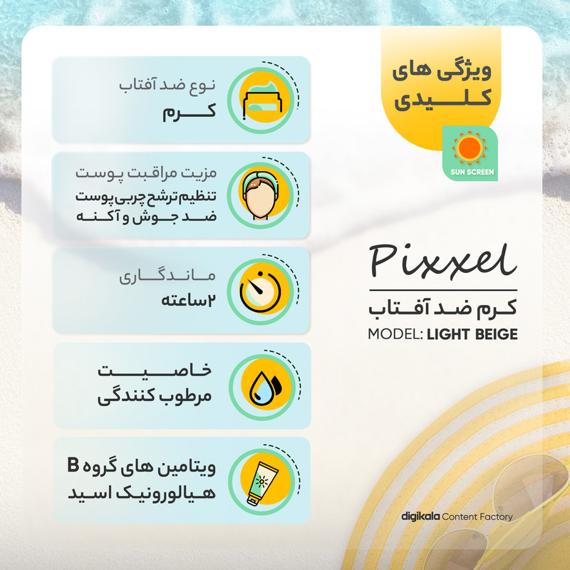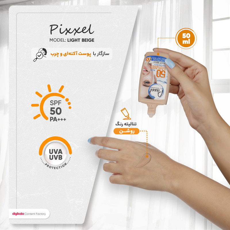 کرم ضدآفتاب رنگی پیکسل 50 SPFمدل LIGHT BEIGE مناسب برای پوست‌های چرب، حجم 50 میلی‌لیتر