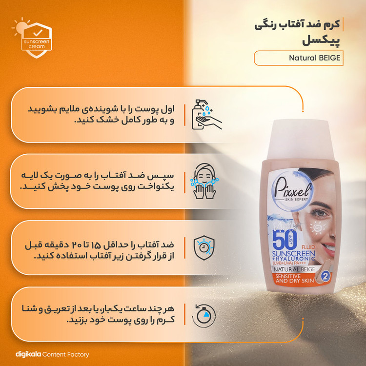 کرم ضدآفتاب پیکسل مدل Natural BEIGE، پوست خشک حجم 50 میلیلیتر
