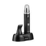 موزن گوش، بینی و ابرو «کوئین» (Queen) مدل «NE-115» با تیغهی استیل ضدزنگ و یک عدد سری خط زن , قابل شست و شو، برای آقایانی که موهای گوش و بینی بلندی دارند ایده آل است. در طراحی بدنهی این دستگاه اصول ارگونومیک رعایت شدهاند و ازاینرو استفاده از آن بسیار آسان است. بدنه در این مدل به صورتی تعبیه شده که از لیز خوردن موزن در دست جلوگیری میکند. این مسئله اهمیت زیادی دارد؛ چون لیزخوردن موزن ممکن است به آسیبدیدگی منجر شود. البته تیغههای مدل NE-115 طوری طراحی شدهاند که از گازگرفتن و ایجاد خراش و برش جلوگیری میکنند. سری موزنی که برای گوش و بینی استفاده میشود، حتما باید قابلیت شستوشو داشته باشد و طراحان هم این مسئله را مد نظر قرار دادهاند. شما میتوانید سری دستگاه را با خیال راحت زیر شیر آب بگیرید و بشویید؛ اما به خاطر داشته باشید که بدنهی دستگاه ضد آب نیست و بهتر است از خیس شدن آن جلوگیری شود. در پایان اینکه موزن گوش و بینی کوئین مدل NE-115 توسط باتری قلمی تغذیه میشود و یک درپوش محافظ هم دارد.